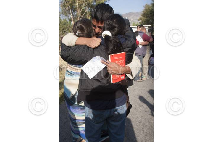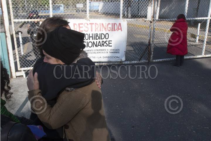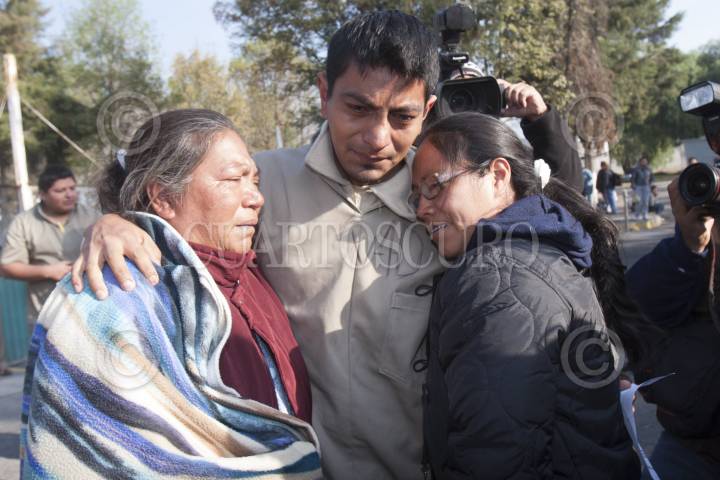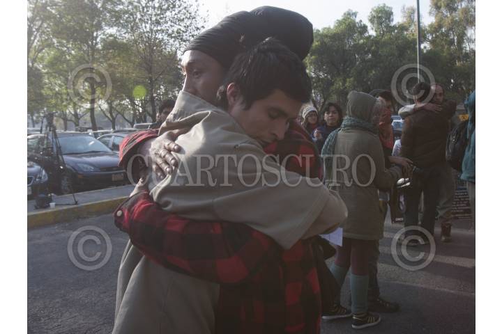 MÉXICO, D.F., 09DICIEMBRE2012.-Familiares del fotoperiodista rumano Mircea Topolenau, arrestado durante las protestas ocurridas en la capital mexicana el 1 de diciembre. Se abrazan en la salida del Reclusorio Norte, pues les informaron de su liberación, así como deportación por "violar el Artículo 33" durante las pasadas manifestaciones del primero de diciembre, en contra de Enrique Peña Nieto durante su toma de protesta. FOTO: JUAN PABLO ZAMORA /CUARTOSCURO.COM