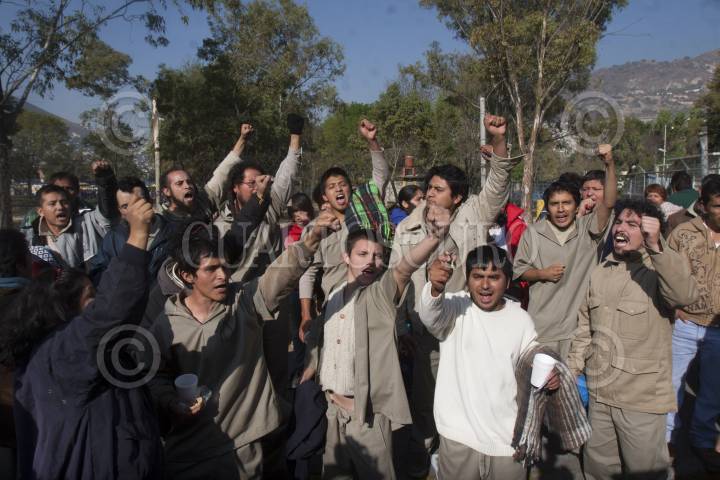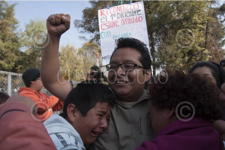 MÉXICO, D.F., 09DICIEMBRE2012.- 56 jóvenes involucrados en las pasadas manifestaciones del primero de diciembre, en contra de Enrique Peña Nieto durante su toma de protesta, fueron liberados esta mañana luego de que se desvanecieron las acusaciones en su contra por delito de ataques a la paz pública. FOTO: JUAN PABLO ZAMORA /CUARTOSCURO.COM