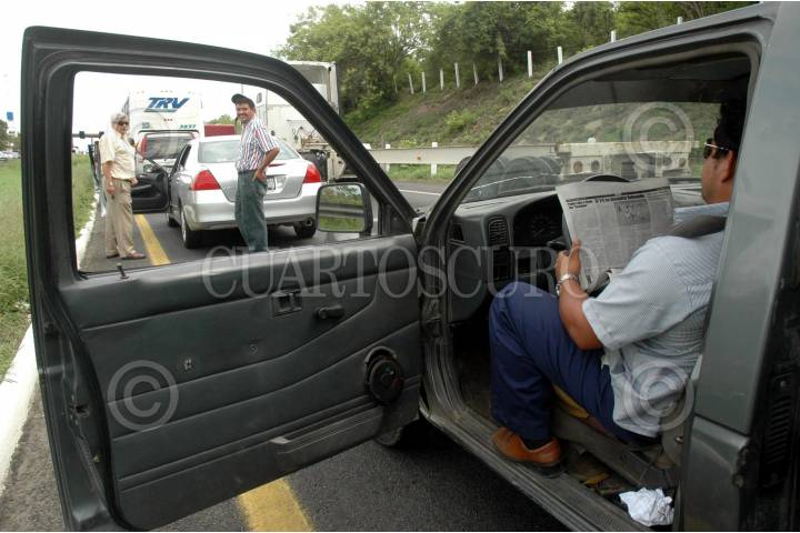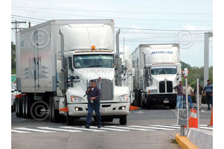 LA ANTIGUA, VERACRUZ. 09JUNIO2008.- Transportistas adheridos a la Camara Nacional del Autotransporte de Carga (CANACAR). Se unieron a la manifestaciòn contra la aplicaciòn del Impuesto empresarial de tasa ùnica (IETU). Bloqueando por espacio de hora y media la caseta de peaje de La Antigua. FOTO: JOSE CANDELARIO/CUARTOSCURO.COM