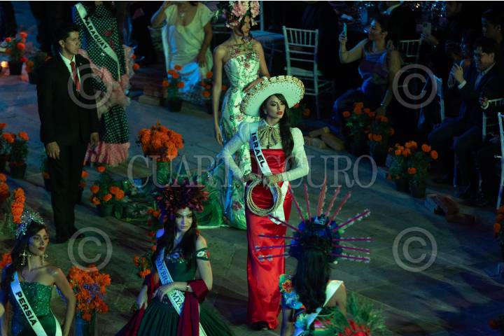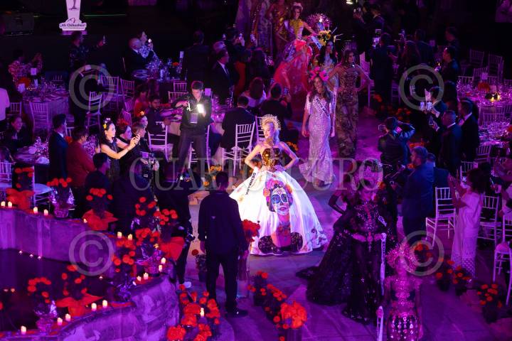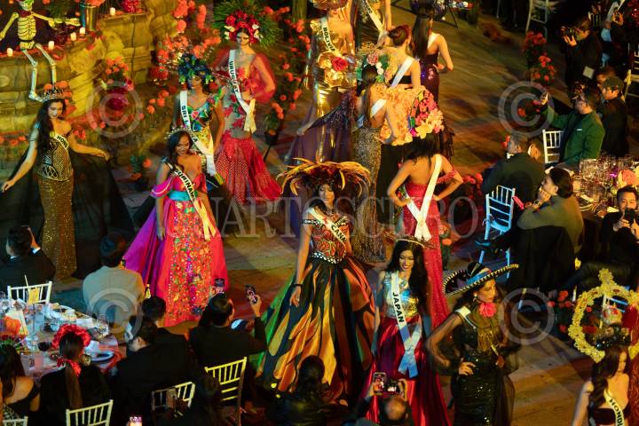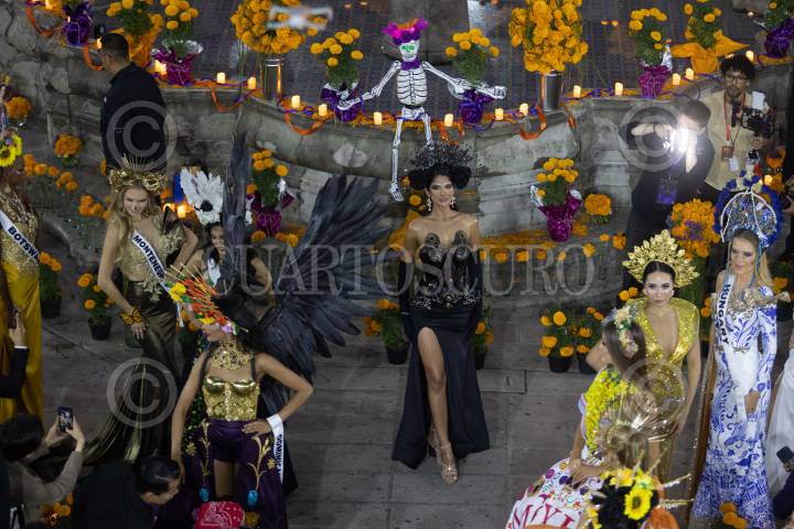 CIUDAD DE MÉXICO, 01NOVIEMBRE2024. Participantes desfilan en la “Gala de las Catrinas” con vestidos de diseñadores mexicanos; evento a beneficencia organizado por Miss Universe, en el Antiguo Colegio de las Vizcaínas. FOTO: EDGAR NEGRETE LIRA/CUARTOSCURO.COM