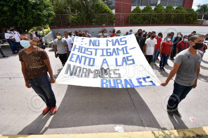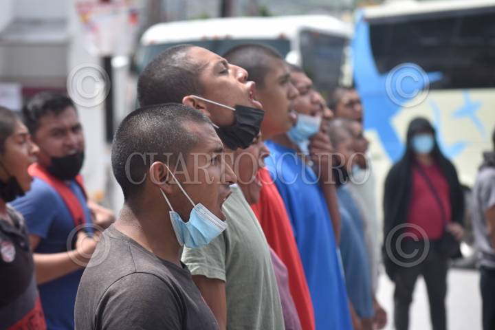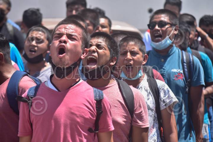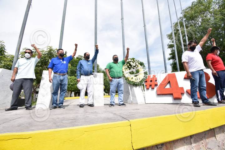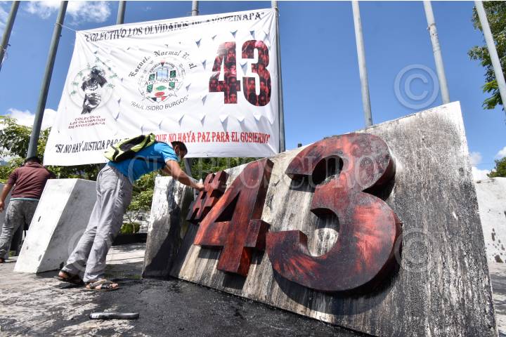 Normalistas iniciaron lo que ellos denominan la semana de lucha previo a cumplirse 7 años del secuestro de los 43 estudiantes de Ayotzinapa. El contingente se reunión en el Antimonumento de los 43, el cual limpiaron ya que fue vandalizado con grasa.