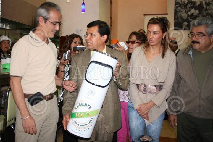 MÉXICO, D.F., 19JUNIO2008.-El diputado Victor Hugo Cirilo Vazquez, encabeó la entraga de Ceniceros en establecimientos comerciales del cuadro del Zocalo capitalino, estos cenicerros se colocaran para que loos fumadores no tiren sus colillas en la calle. FOTO: RICARDO CASTELAN /CUARTOSCURO.COM