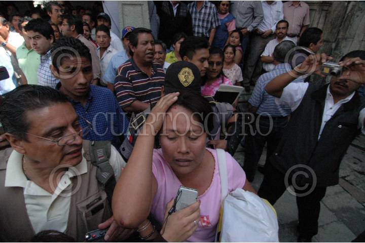 OAXACA, OAXACA., 27FEBRERO2008.- Grupos políticos en pugna de la agencia municipal de Santa Rosa Panzacola, protagonizaron una zacapela en el interior del municipio de Oaxaca de Juárez, durante la sesión ordinaria de cabildo, donde se enfrentaron en agresiones verbales y luego a empujones, con saldo de una persona lesionada. La lesionada responde al nombre a Antonia Guzman FOTO:MAX NUÑEZ/CUARTOSCURO.COM
