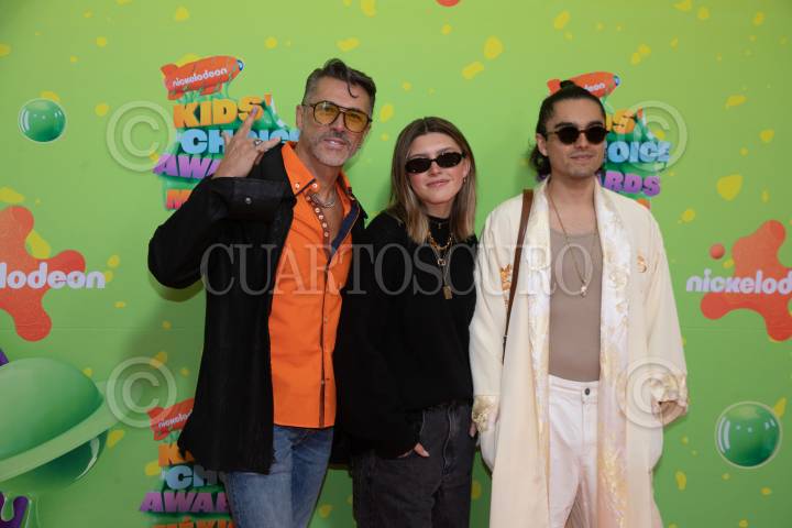 Sergio Mayer, Antonia y Sergio Mayer Jr. a su paso por la alfombra naranja de Los Kids Choice Awards México 2023, la celebración más pegajosa de Nickelodeon Latinoamérica, celebrada en el Auditorio Nacional.