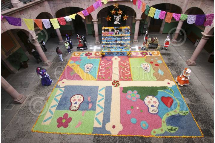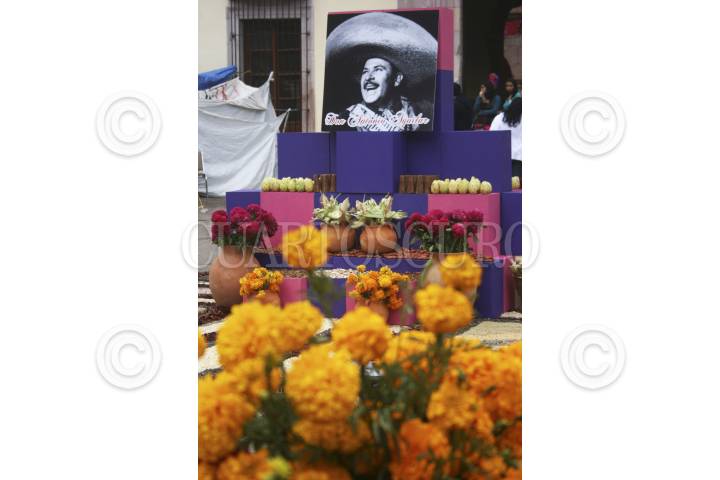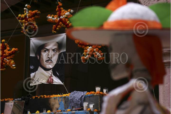 ZACATECAS, ZACATECAS, 31OCTUBRE2012.- Universidades, comercios y dependencias gubernamentales colocaron ofrendas en los tradicionales altares de muertos dedicados a personajes zacatecanos como actores del cine nacional y figuras del ambito internacional. Destacaron los dedicados al charro zacatecano Antonio Aguilar. Los altares estarán en la explanada de la plaza de armas hasta el próximo 3 de noviembre. FOTO: ALEJANDRO ORTEGA NERI /CUARTOSCURO.COM