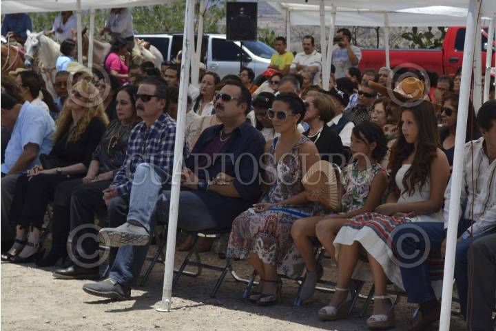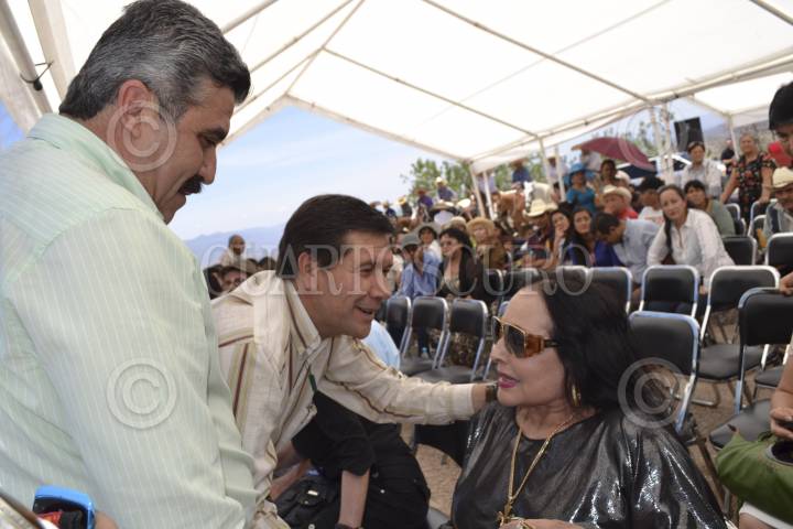 VILLANUEVA, ZACATECAS, 19JUNIO2013.- La Familia Aguilar Jiménez ofreció con motivo del sexto aniversario luctuoso de Don Antonio Aguilar Barraza. Familiares y amigos de doña Flor Silvestre, Pepe y Toño Aguilar, estuvieron presentes durante la ceremonia litúrgica realizada a un costado del mausoleo en donde reposan los restos del Charro de México. El Secretario General de Gobierno, Francisco Escobedo Villegas, acudió, en representación del Gobernador Miguel Alonso Reyes a la ceremonia. FOTO: CUARTOSCURO.COM