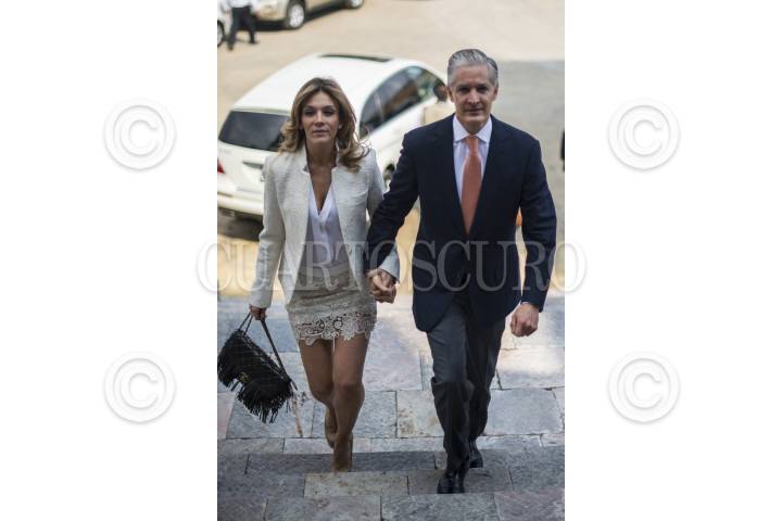 HUIXQUILUCAN, EDOMEX, 17ENERO2015.- El priista y aspirante a diputado federal Alfredo del Mazo Maza y su esposa Fernanda Castillo, acudieron a la fiesta de cumpleaños del empresario y Arzobispo Antonio Chedrahui. FOTO: CUARTOSCURO.COM
