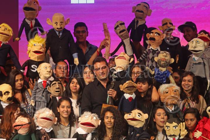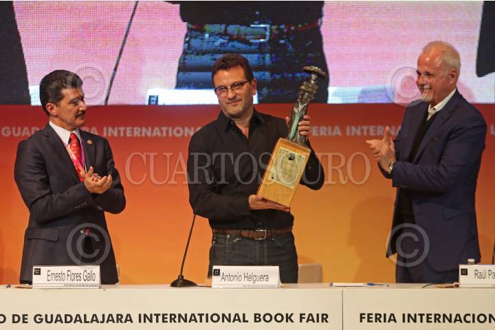 GUADALAJARA, JALISCO, 02DICIEMBRE2017.- El caricaturista mexicano Antonio Helguera, recibió el Homenaje de Caricatura la Catrina, esto en el marco de la edición 31 de la Feria Internacional del Libro de Guadalajara (FIL), que se lleva a cabo en las instalaciones de la Expo y en donde el invitado de Honor es Madrid. FOTO: FERNANDO CARRANZA GARCIA / CUARTOSCURO.COM