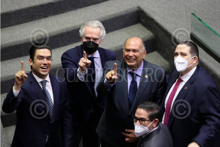 Los diputados Jorge Romero, Santiago Creel y Antonio López Garibay posaron para una fotografía durante la Sesión Ordinaria en el pleno de la Cámara de Diputados