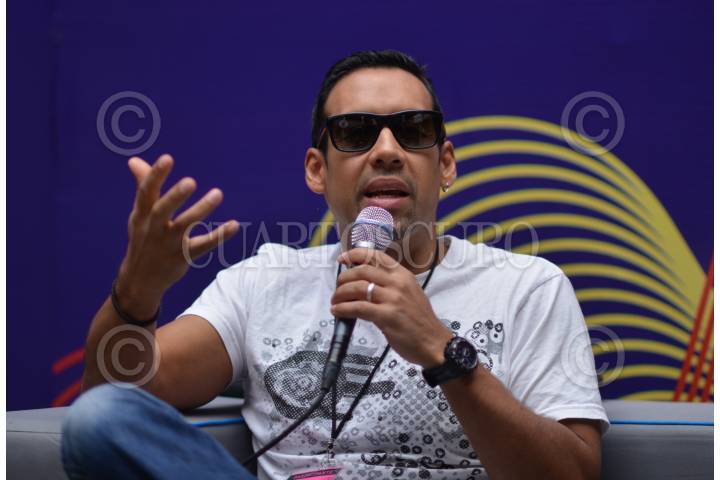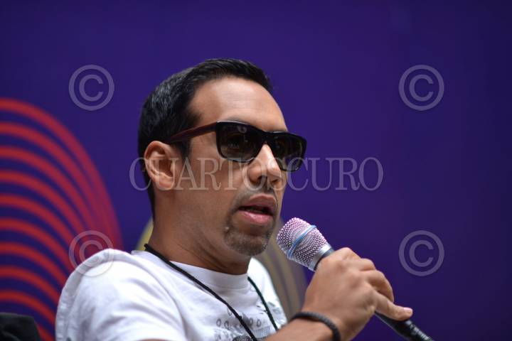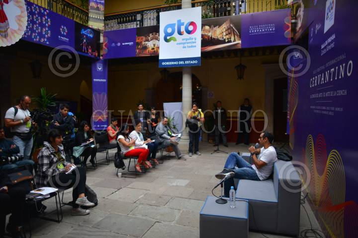 GUANAJUATO, GUANAJUATO, 17OCTUBRE2015.- Antonio Sánchez, baterista mexicano reconocido internacionalmente por la composición de la banda sonora de "Birdman", durante la conferencia de prensa. Sánchez presentará esta noche su nuevo material discográfico "The meridian suit" junto con su banda Migration en la explanada de la Alhóndiga como parte de la edición XLIII del Festival Internacional Cervantino 2015 "La ciencia del arte / El arte de la ciencia". FOTO: ADOLFO VLADIMIR /CUARTOSCURO.COM