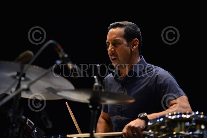 GUANAJUATO, GUANAJUATO, 17OCTUBRE2015.- Antonio Sánchez y su banda Migration, presentó al público guanajuatense su nuevo material discográfico "The meridian suit" en la explanada de la Alhóndiga como parte de la edición XLIII del Festival Internacional Cervantino 2015 "La ciencia del arte / El arte de la ciencia". FOTO: ADOLFO VLADIMIR /CUARTOSCURO.COM
