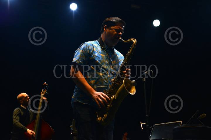 MÉXICO, D.F., 10ABRIL2015.- Como parte de la 5ta Muestra Internacional de Jazz, se presentó en el Jardín Hidalgo del centro de Coyoacán, Antonio Sánchez & Migration, baterista mexicano creador de la música de la película ganadora del Oscar, Birdman. FOTO: ADOLFO VLADIMIR /CUARTOSCURO.COM