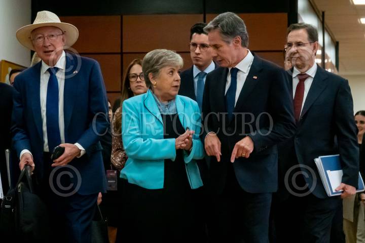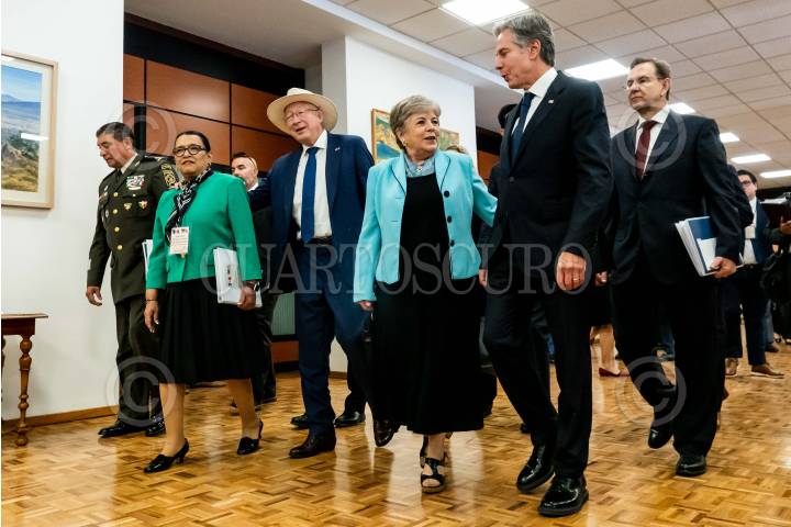 CIUDAD DE MÉXICO, 05OCTUBRE2023.- Ken Salazar, embajador de Estados Unidos en México; Alicia Bárcena, canciller mexicana; Antony Blinken, Secretario de Estado de los Estados Unidos, y Esteban Moctezuma, embajador de México en Estados Unidos, arribaron a la reunión con motivo de los “Diálogos de Alto Nivel en Seguridad México-Estados Unidos” a fin de trazar planes en conjunto para el combate al narcotráfico, tráfico de armas y personas. FOTO: GALO CAÑAS/CUARTOSCURO.COM