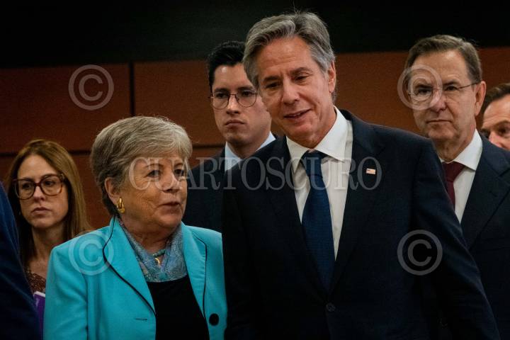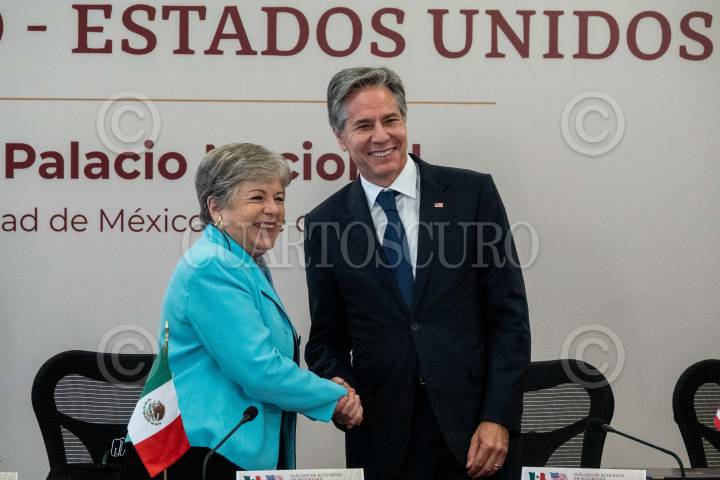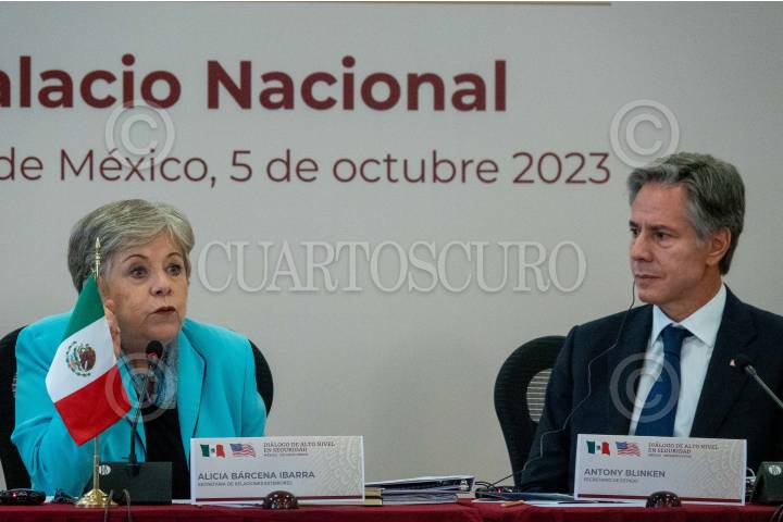 CIUDAD DE MÉXICO, 05OCTUBRE2023.- Alicia Bárcena, canciller mexicana, y Antony Blinken, Secretario de Estado de Estados Unidos, durante la reunión con motivo de los “Diálogos de Alto Nivel en Seguridad México-Estados Unidos” a fin de trazar planes en conjunto para el combate al narcotráfico, tráfico de armas y personas. FOTO: GALO CAÑAS/CUARTOSCURO.COM