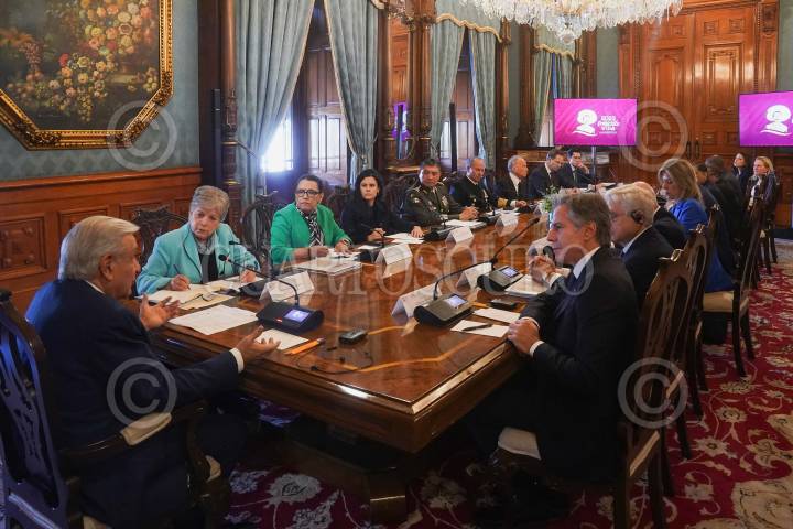 CIUDAD DE MÉXICO, 05OCTUBRE2023.- Andrés Manuel López Obrador, presidente de México, encabezó en Palacio Nacional el diálogo bilateral entre México y Estados Unidos, en materia de seguridad y migración. Estuvieron presentes: Antony Blinken, Secretario de Estado; Merrick Garland, Fiscal General de Justicia; Alejandro Mayorkas, Secretario de Seguridad Nacional; Alicia Bárcena, canciller mexicana; Rosa Icela Rodríguez, secretaria de Seguridad Pública y Protección Ciudadana; Alejandro Gertz Manero, Fiscal General de la República; Luisa María Alcalde , secretaria de Gobernación; Luis Cresencio Sandoval, secretaria de la Defensa Nacional, y Rafael Ojeda, secretario de Marina. FOTO: PRESIDENCIA/CUARTOSCURO.COM