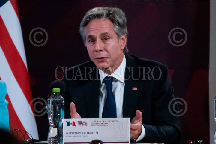 CIUDAD DE MÉXICO, 05OCTUBRE2023.- Antony Blinken, Secretario de Estado de Estados Unidos, durante la reunión con motivo de los “Diálogos de Alto Nivel en Seguridad México-Estados Unidos” a fin de trazar planes en conjunto para el combate al narcotráfico, tráfico de armas y personas. FOTO: GALO CAÑAS/CUARTOSCURO.COM