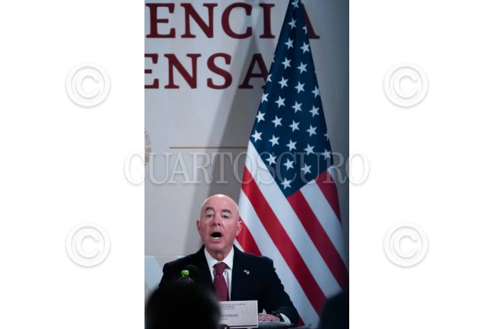 CIUDAD DE MÉXICO, 05OCTUBRE2023.- Alejandro Mayorkas, Secretario de Seguridad Nacional de EEUU, durante la conferencia de prensa para dar detalles de los acuerdos y planes trazados en los “Diálogos de Alto Nivel en Seguridad México-Estados Unidos” FOTO: GALO CAÑAS/CUARTOSCURO.COM