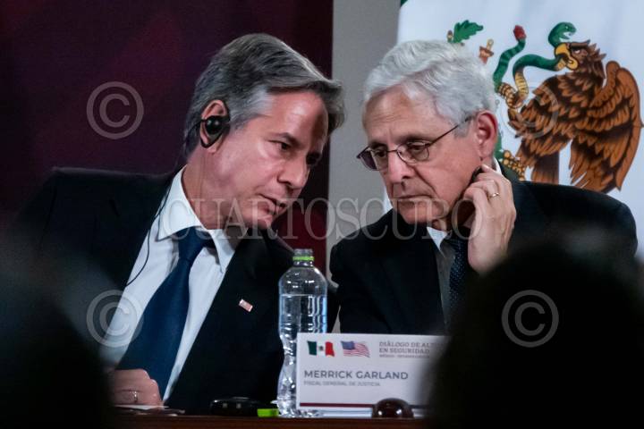 CIUDAD DE MÉXICO, 05OCTUBRE2023.- La comitiva de seguridad de Estados Unidos encabezada por: Antony Blinken, Secretario de Estado; Merrick Garland, Fiscal General de Justicia, y Alejandro Mayorkas, Secretario de Seguridad Nacional, durante la la reunión con motivo de los “Diálogos de Alto Nivel en Seguridad México-Estados Unidos” a fin de trazar planes en conjunto para el combate al narcotráfico, tráfico de armas y personas. FOTO: GALO CAÑAS/CUARTOSCURO.COM