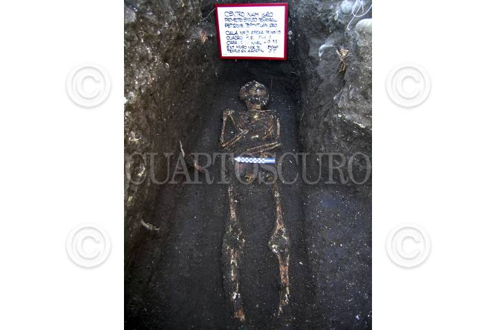 MÉXICO, D.F., 10JULIO2012.- Más de una decena de entierros y estructuras arquitectónicas que datan de la época prehispánica, fueron ahallados en un predio de la avenida Aquiles Serdán, en la delegación Azcapotzalco. De acuerdo con arqueólogos, el descubrimiento es evidencia de un barrio de comerciantes tepanecas que tuvo su esplendor hace 700 años, un par de siglos antes del dominio del imperio mexica en la Cuenca de México. FOTO: INAH /CUARTOSCURO.COM