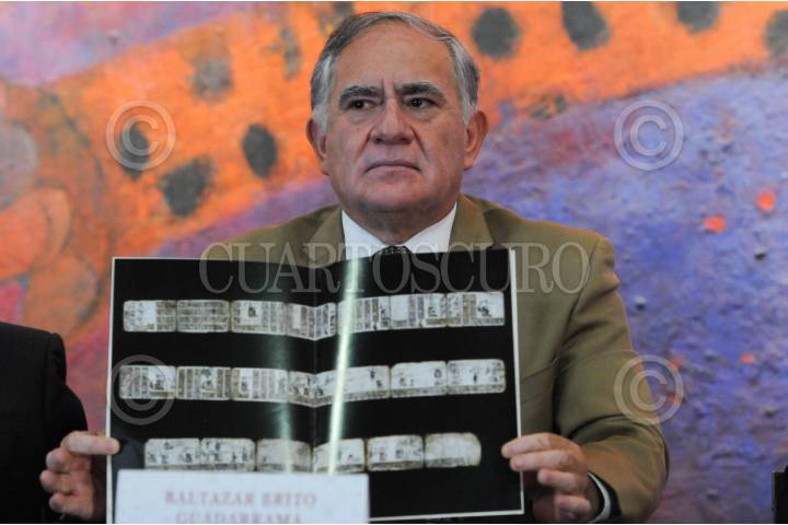 CIUDAD DE MÉXICO, 20MARZO2024.- Baltazar Brito, titular de la Biblioteca Nacional de Antropología e Historia, muestra uno de los códices que se presentaron esta mañana. FOTO: DANIEL AUGUSTO /CUARTOSCURO.COM