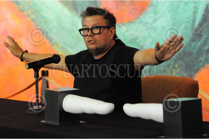 CIUDAD DE MÉXICO, 17ABRIL2024.-El artista plástico Rivelino, ofrece una conferencia para anunciar la presencia de su escultura "Tú" en la explanada del Museo Nacional Antropología. FOTO: DANIEL AUGUSTO /CUARTOSCURO.COM