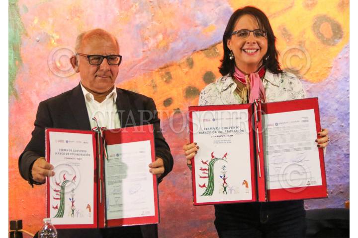 CIUDAD DE MÉXICO. 21MAYO1024.- El Consejo Nacional de Humanidades, Ciencias y Tecnologías (Conahcyt) y la Secretaría de Cultura federal, a través del Instituto Nacional de Antropología e Historia (INAH), Firma de convenio marco de colaboración Conahcyt-INAH. El acto se realizó en el vestíbulo del auditorio “Jaime Torres Bodet”, del Museo Nacional de Antropología. Los encabezaron María Elena Álvarez-Buylla Roces y Diego Prieto Hernández. FOTO: VICTORIA VALTIERRA/CUARTOSCURO.COM