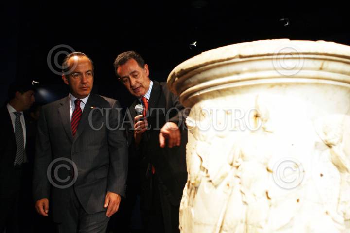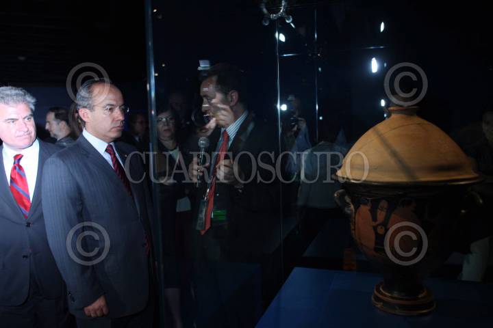 MÉXICO D.F., 11AGOSTO2008.- Felipe Calderon Hinojosa presidente de México, durante la inaguración de la exposición España, encrucijada de civilizaciones que tuvo lugar en el museo nacional de antropología. FOTO: ALFREDO GUERRERO/CUARTOSCURO.COM