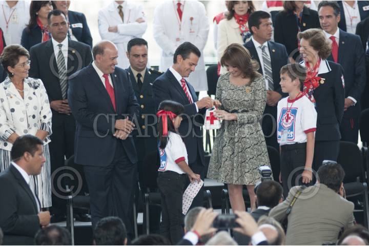 MÉXICO, D.F., 20MARZO2014.- Fernando Suniaga, director de la Cruz Roja Mexicana; Enrique Peña Nieto, presidente de México; y Angélica Rivera de Peña; acudieron a la puesta en marcha de la colecta anual de la Cruz Roja Mexicana en el zócalo capitalino. FOTO: IVÁN STEPHENS /CUARTOECURO.COM