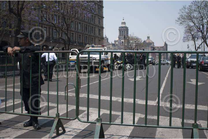 MÉXICO, D.F., 20MARZO2014.- Las calles aledañas a la Plaza de la Constitución fueron cercadas por el estado mayor presidencial durante a la puesta en marcha de la colecta anual de la Cruz Roja Mexicana. FOTO: IVÁN STEPHENS /CUARTOECURO.COM