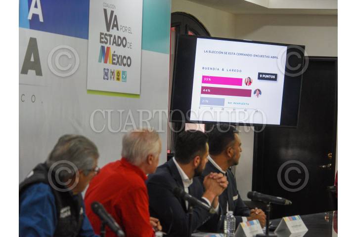 Los líderes del PRI, PAN, PRD y Nueva Alianza en el Estado de México Erick Sevilla Montea de Oca, Anuar Azar, Agustín Barrera y Mario Alberto Cervantes, integrantes de la Coalición “Va por el Estado de México” pidieron a MORENA respeten los acuerdos y que su candidata se presente al primer debate rumbo a la gubernatura.