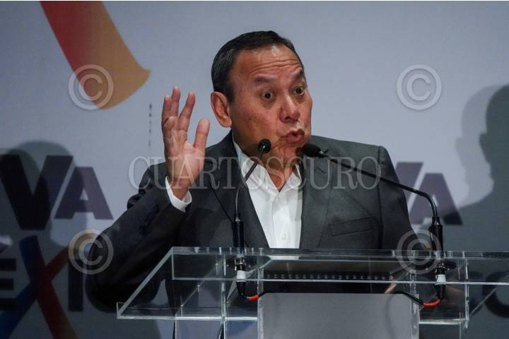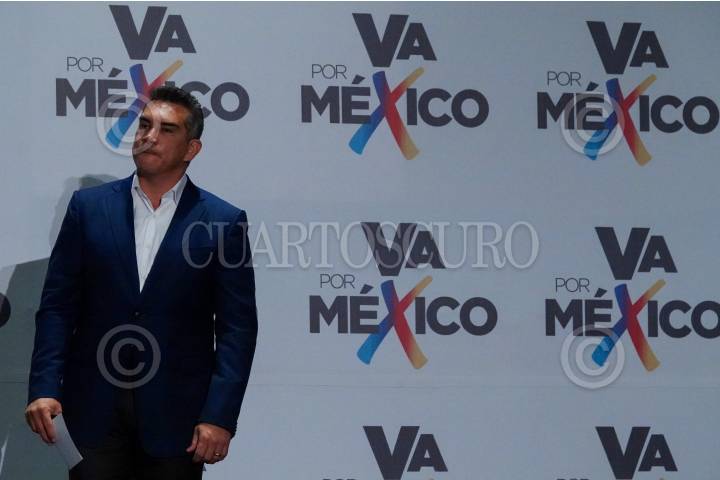 Marko Cortés durante la conferencia de prensa de la coalición Va Por México.
