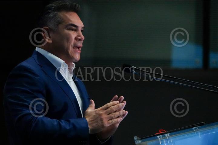 Alejandro Moreno Cárdenas durante la conferencia de prensa de la coalición Va Por México.