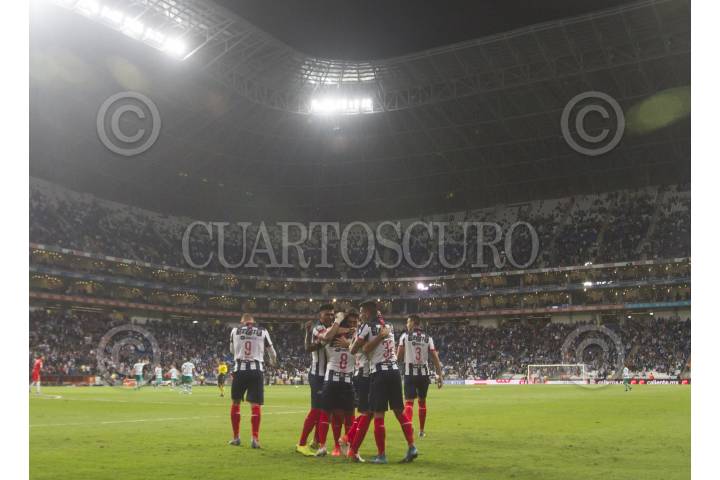 MONTERREY, NUEVO LEÓN, 28NOVIEMBRE2019.- Jugadores del equipo de los Rayados del Monterrey, celebran el gol, ante el equipo de Santos en el estadio BBVA Bancomer, partido correspondiente a cuartos de final en la Liguilla, Apertura 2019. Marcador Final: Monterrey: 5 - Santos: 2 FOTO: GABRIELA PÉREZ MONTIEL /CUARTOSCURO.COM
