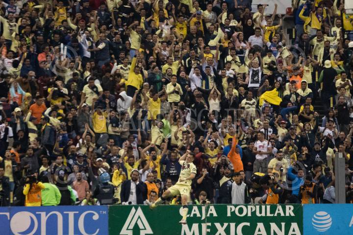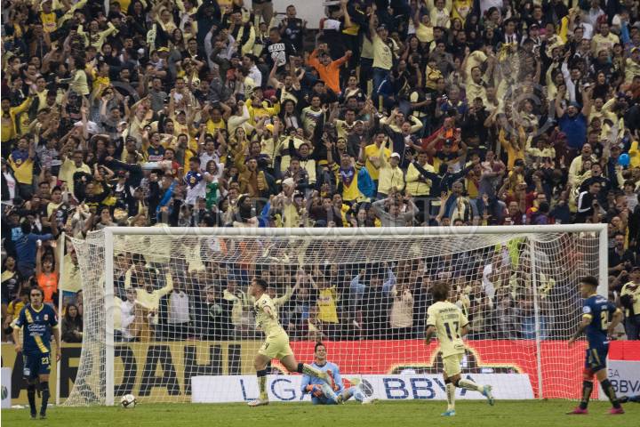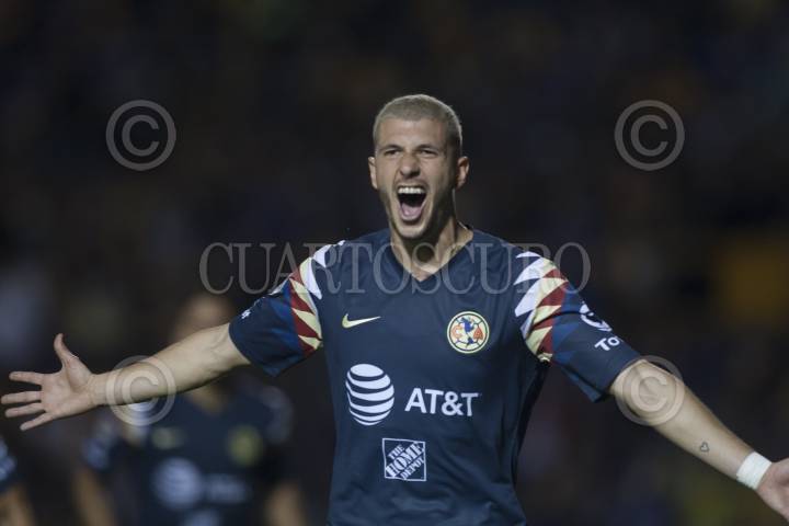 MONTERREY, NUEVO LEÓN, 01DICIEMBRE2019.- Federico Viñas del equipo del América, celebra el gol, ante los Tigres de la UANL, en el estadio Universitario, partido de vuelta en cuartos de final de la Liguilla MX, Apertura 2019. Marcador Final: Tigres: 2 - América: 4 Marcador Global: Tigres: 4 - América: 5 FOTO: GABRIELA PÉREZ MONTIEL /CUARTOSCURO.COM