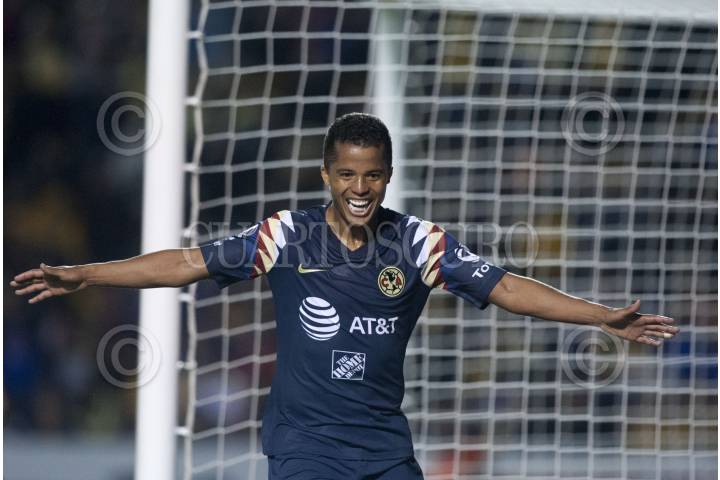 MONTERREY, NUEVO LEÓN, 01DICIEMBRE2019.- Giovani Dos Santos del equipo del América, celebra el gol, ante los Tigres de la UANL, en el estadio Universitario, partido de vuelta en cuartos de final de la Liguilla MX, Apertura 2019. Marcador Final: Tigres: 2 - América: 4 Marcador Global: Tigres: 4 - América: 5 FOTO: GABRIELA PÉREZ MONTIEL /CUARTOSCURO.COM