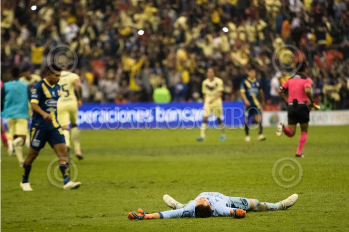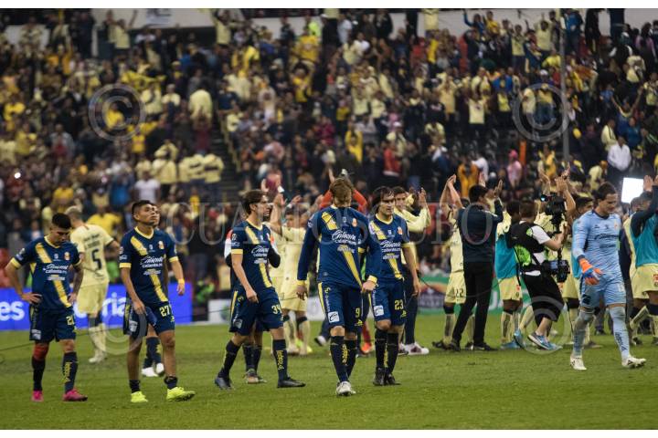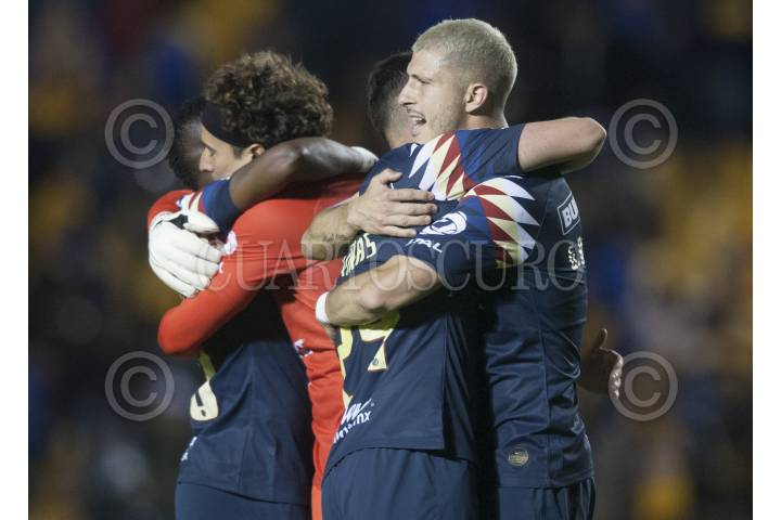 MONTERREY, NUEVO LEÓN, 01DICIEMBRE2019.- Jugadores del equipo del América, celebran el triunfo y su pase a semifinales, ante los Tigres de la UANL, en el estadio Universitario, partido de vuelta en cuartos de final de la Liguilla MX, Apertura 2019. Marcador Final: Tigres: 2 - América: 4 Marcador Global: Tigres: 4 - América: 5 FOTO: GABRIELA PÉREZ MONTIEL /CUARTOSCURO.COM
