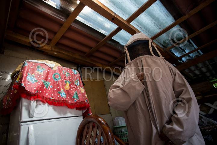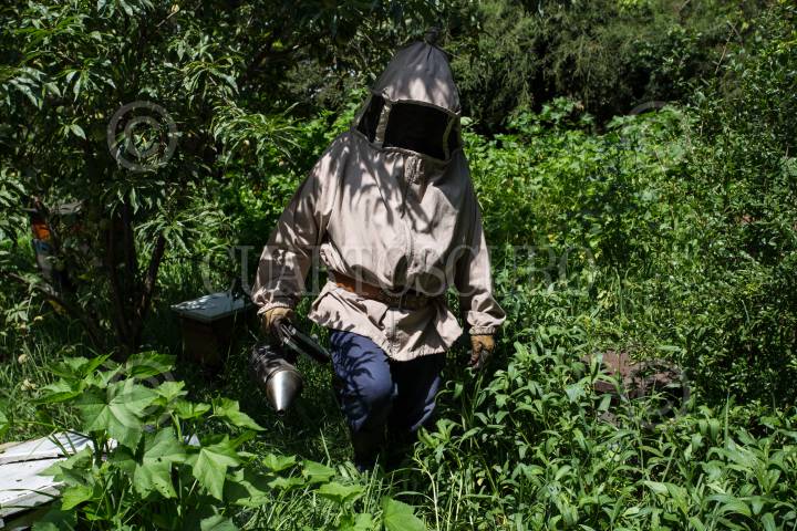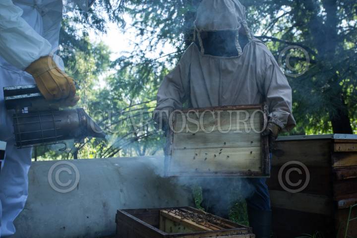 CIUDAD DE MÉXICO, 16AGOSTO2018.- Don Lauro Rivera, cultivador de plantas y apicultor, se dedica a la producción de miel orgánica con 12 colmenas en su chinampa, "pequeño paraíso" en la Ciudad llamado Laguna del toro en la delegación Xochimilco. Como una tradición familiar, cuida y mantiene a las abejas, la polinización y producción de miel, que en los últimos años, diversas investigaciones muestran el peligro que los antófilos corren. El cambio climático, la contaminación del aire, el uso de pesticidas y neonicotinoides así como la sustitución del hábitat y flores que las abejas polinizan por campos de monocultivo son las causas que varios estudios presentan como causa de las bajas en las colmenas. También enlistan la contaminación del aire, que podría impedir que las abejas perciban olores a largas distancias. Han pasado más de veinte años y aún no hay conclusiones definitivas sobre las causas. En México, la cifra estimada de colmenas alcanzaba 3.6 millones en 2016 según Sagarpa. Equivale a un promedio de 180 000 000 000, (ciento ochenta mil millones) de abejas. De las cuales, dependiendo de la región y la estación, han llegado a desaparecer hasta 50% localmente. Fue el caso de la Comarca Lagunera a finales de 2015 e inicios de 2016, cuando perdieron 53% de las 7 mil colmenas de la zona, y empeorando en mayo, quedando sólo unas 2 mil. FOTO: ADOLFO VLADIMIR /CUARTOSCURO.COM