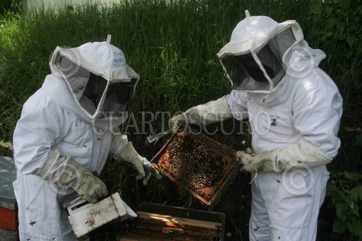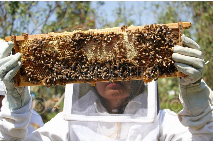 Un apicultor se dispone a recolectar la miel producida por las abejas.