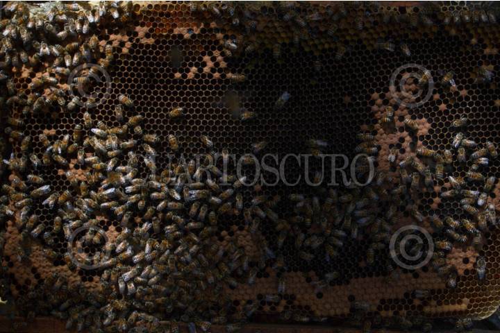 Abejas durante su trabajo en un apiario en el pueblo de San Andrés Ahuayucán, en la alcaldía Xochimilco