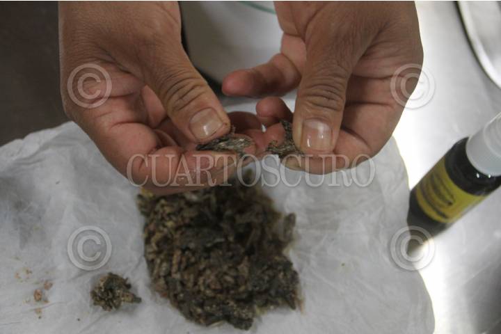 La apicultora Martha Flores muestra los dos tipos de propóleo que las abejas dejan en las alzas durante su trabajo, en el pueblo de San Andrés Ahuayucán, en la alcaldía Xochimilco
