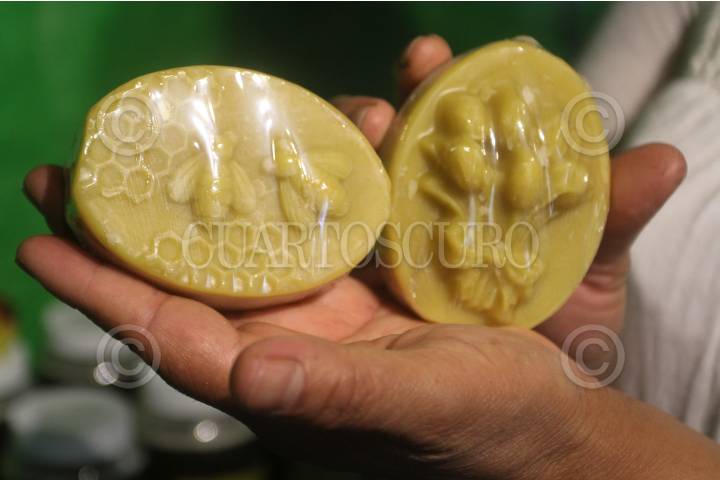 La apicultora Martha Flores elabora productos a base de miel y propóleo como shampoo, bálsamo para cosméticos, jabones, cremas, talco, velas y dulces en el pueblo de San Andrés Ahuayucán, en la alcaldía Xochimilco