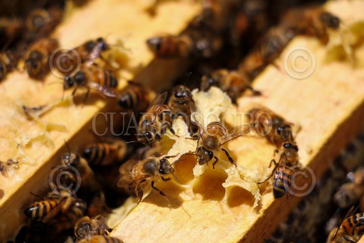 Una abeja macho se encontraba en una colmena de abejas que fueron trasladadas de un poste al Apiario Santa Cruz Alcapixca para su cuidado y reproducción de la población
