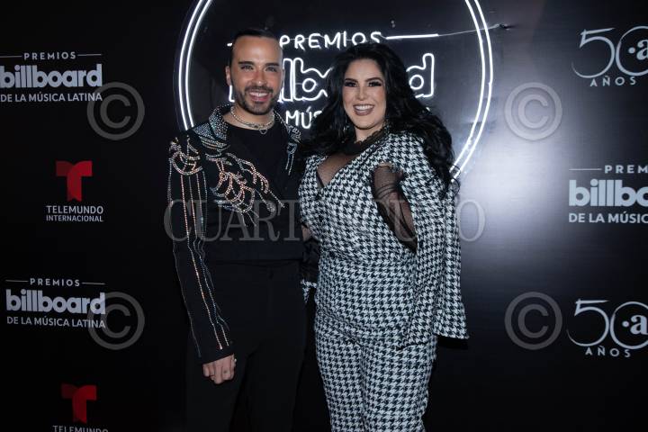 CIUDAD DE MÉXICO, 05OCTUBRE2023.- Apio Quijano y Curvy Zelma a su paso por la alfombra roja de los Premios Billboard de la música latina en la Ciudad de México. FOTO: EDGAR NEGRETE LIRA/CUARTOSCURO.COM