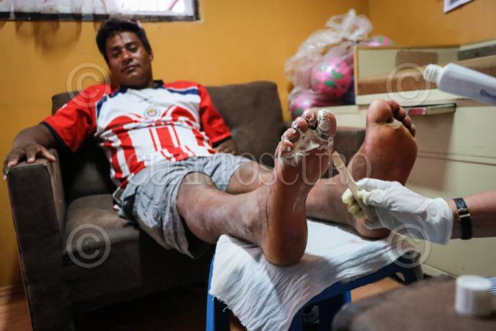 APIZACO, TLAXCALA. 05ABRIL2019. El albergue de la "Sagrada Familia" ubicado en la ciudad de Apizaco, Tlaxcala recibe de manera diaria a migrantes centroamericanos, donde les ofrecen comida, hospedaje y servicios médicos. Gran parte de los centroamericanos que viajan en busca del sueño americano van en busca de una mejor calidad de vida, pero otra parte viaja con el objetivo de alejarse de la violencia y de las pandillas como la "Mara Salvatrucha". Actualmente el albergue migrante se encuentra en desabasto de víveres, debido a que los donativos de la población disminuyeron considerablemente, por la mala imagen que se genero a raíz de las caravanas migrantes. FOTO: JOAQUÍN SANLUIS /CUARTOSCURO.COM