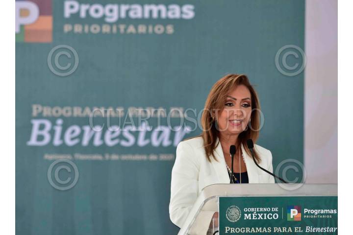 Lorena Cuéllar Cisneros, Gobernadora del Estado de Tlaxcala; durante la presentación de los "Programas para el Bienestar", en Tlaxcala.