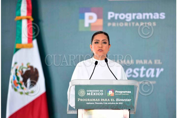Ariadna Montiel Reyes, Subsecretaria de Bienestar; durante la presentación de los "Programas para el Bienestar", en Tlaxcala.