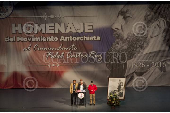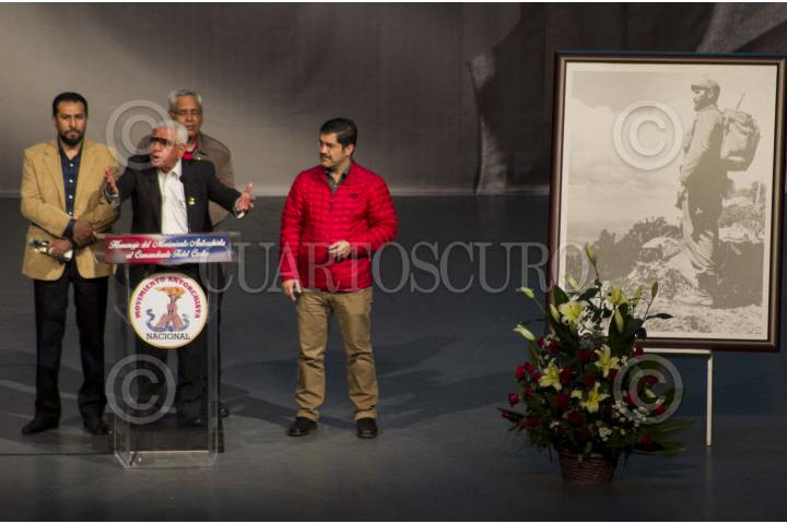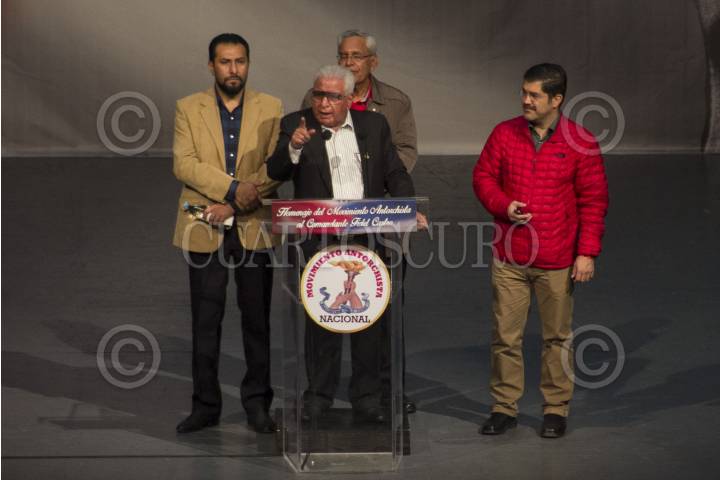 CIUDAD DE MÉXICO, 05DICIEMBRE2016.- Aquiles Córdova Morán, dirigente nacional de Antorcha Campesina, ofreció un discurso con motivo del homenaje realizado al comandante Fidel Castro Ruz, tras su fallecimiento el pasado 25 de noviembre en Santiago, Cuba. Córdova destacó el importante papel que tuvo en las historia universal y como su conocimiento ha influenciado a miles de personas. FOTO: GALO CAÑAS /CUARTOSCURO.COM