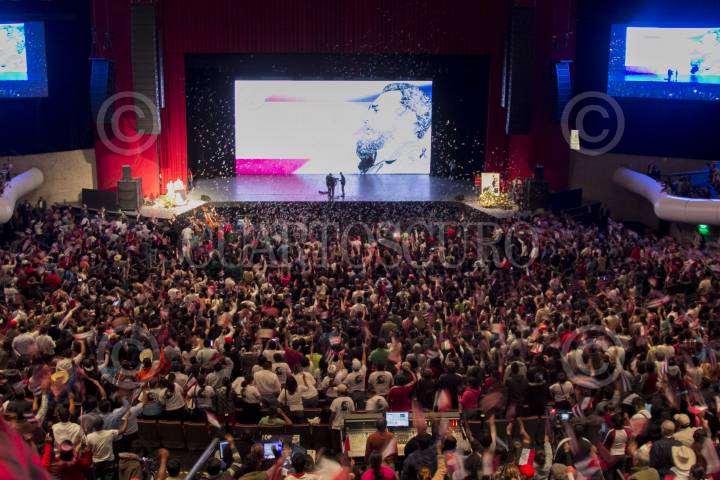 CIUDAD DE MÉXICO, 07NOVIEMBRE2017.- Aquiles Córdova Morán, fundador y líder de Movimiento Antorchista Nacional, encabezó la conferencia “100 Años de la Revolución Rusa” en el Auditorio Nacional, en donde miles de miembros se dieron cita para celebrar y homenajear el primer centenario de la Revolución Rusa. FOTO: MARIO JASSO /CUARTOSCURO.COM