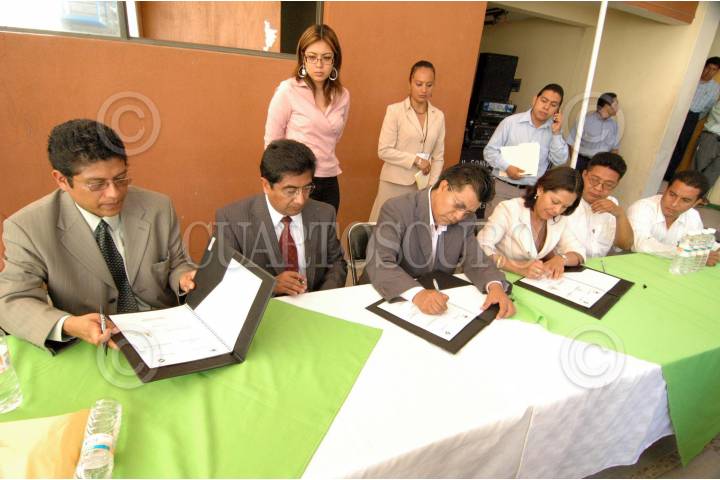 OAXACA, OAXACA., 18FEBRERO2008.- Aspecto de la firma de convenio que se realizó este dia entre el presidente de Xoxotlan, Argeo Aquino y la mesa de Derechos Humanos. FOTO: MAX NUNEZ/CUARTOSCURO.COM