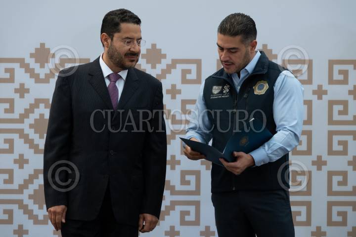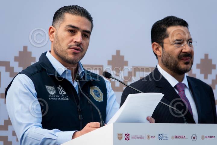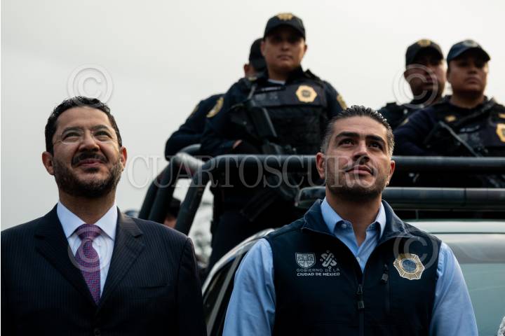 Omar García Harfuch y Martí Batres durante el arranque del operativo de seguridad entre las alcaldías Iztapalapa y Tláhuac.